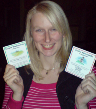 1. April Carcassonne Verena spielt wieder mit und erobert alle Ressourcen für sich.